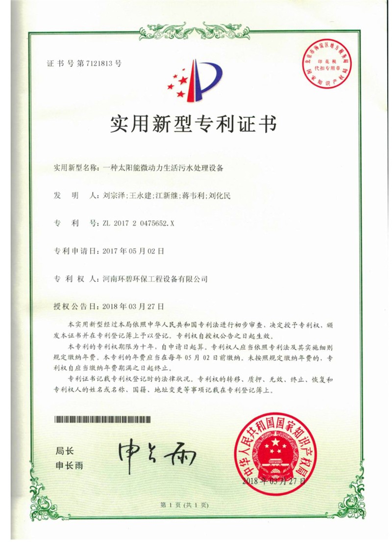 (证书)一种太阳能微动力生活污水处理设备.jpg
